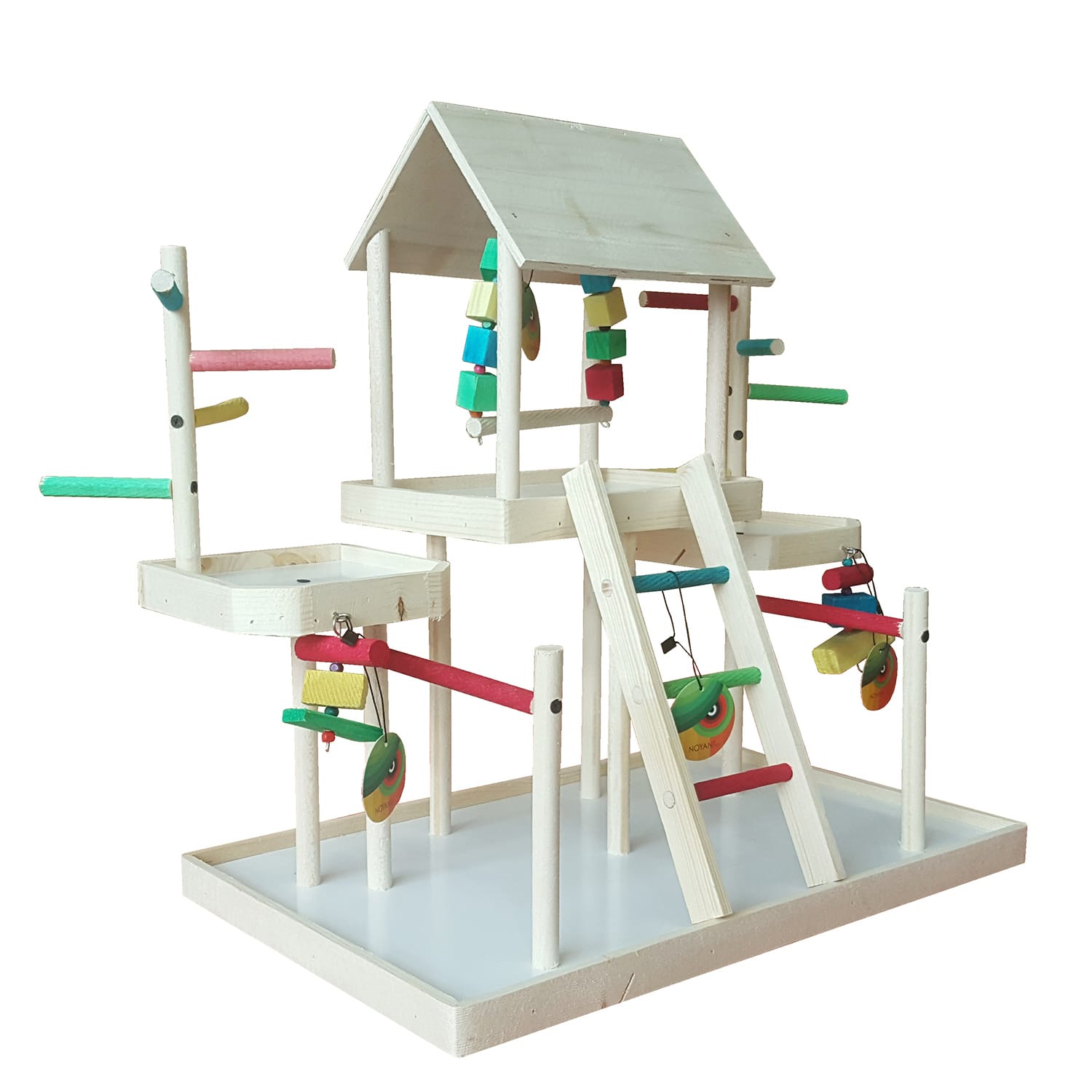این پارک بازی برای طوطی‌های با جثه متوسط طراحی شده و دارای ویژگی‌های کاربردی زیر است: